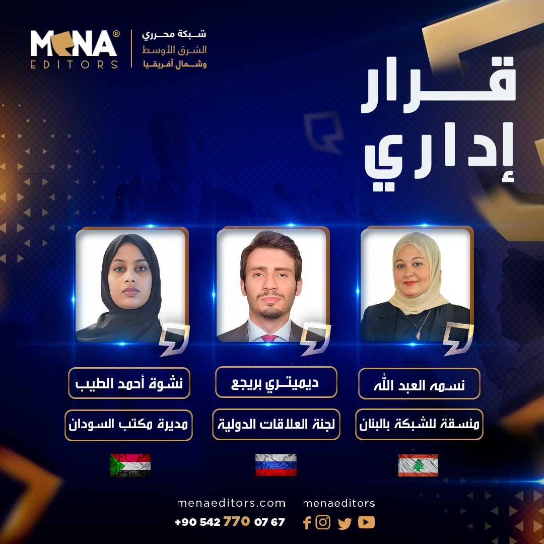أعلنت شبكة محرري الشرق الأوسط وشمال إفريقيا (MENA Editors Network) عن قرارات إدارية جديدة، في سياق تعزيز هيكلها التنظيمي وتطوير أدائها المؤسسي، بما ينسجم مع رؤيتها الاستراتيجية حتى عام 2030.